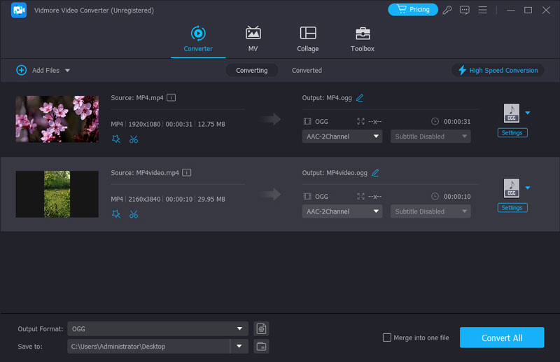 Vidmore Video Converter is an all-in-one MP4 to OGG converter that can meet all your need. The intuitive interface lets you to find what you want quickly. Moreover, the extensive custom options and editing tools are available to advanced users.