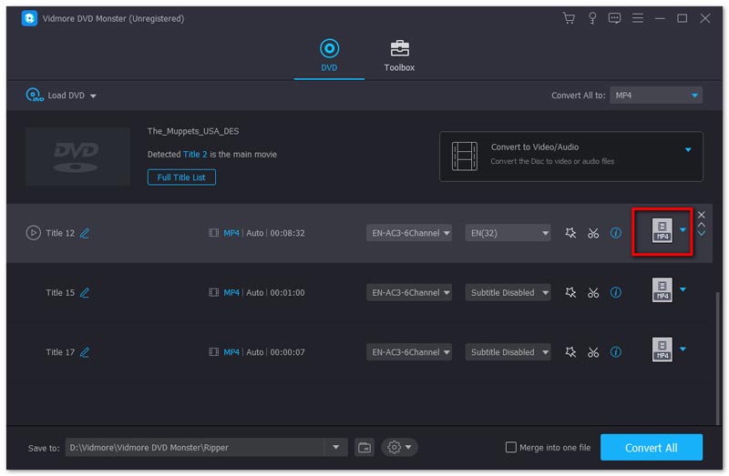 Vidmore DVD Monster is the best software to backup DVD to hard drive in optional 3 modes for Windows 10/8/7 users. It can convert DVD discs to MP4, MKV, AVI, MOV, WMV, etc., and extract MP3, FLAC and more from DVDs at 6x fast ripping speed and 100% original quality.