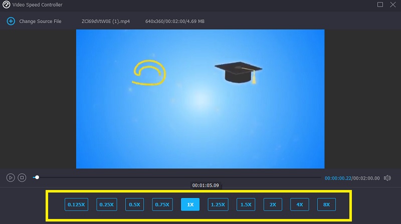 Step 2: After that, you will be able to see nine various speed rates, ranging from 0.25X to 8X. You can choose the ideal pace that you prefer to speed up the GIF. You may quickly modify the setting and tweak the effect by previewing the accelerated GIF files on the screen. It allows for easier customization.