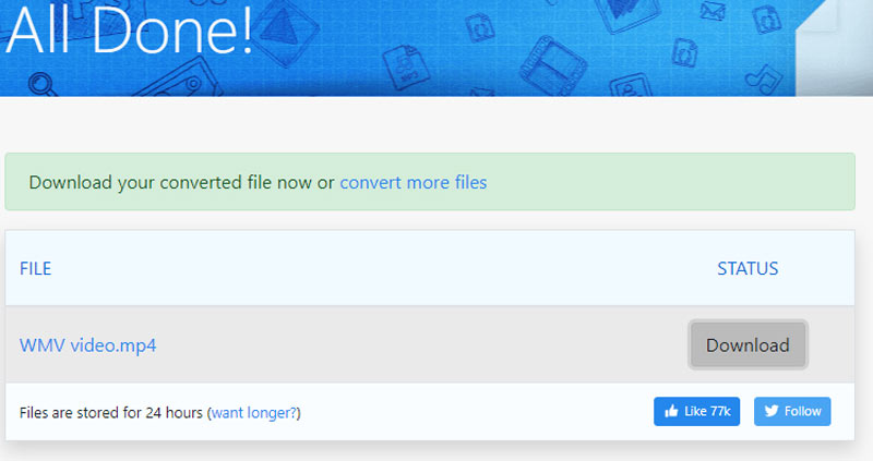 Quindi ora avresti dovuto sapere più o meno di WMV. Quando devi convertire video da WMV in MP4, anche oltre 100 MB, Vidmore Free Online Video Converter sarebbe la scelta migliore.