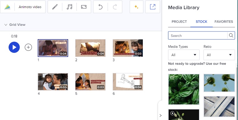 For den andre online filmprodusenten er Animoto egnet for lage lysbildefremvisninger for bryllup, produktdemoer og bursdagskort. De enkle og vanlige videoene kan lages fantastisk så lenge vi bruker Animoto. En flott ting vi kan bruke med dette nettbaserte redigeringsverktøyet er det faktum at det har et stort musikkbibliotek som vi kan bruke til å lage interessante og morsomme videoer. Du kan også samarbeide med alle disse ved å bruke mer enn 40 fonter for å gjøre videoen din levende.