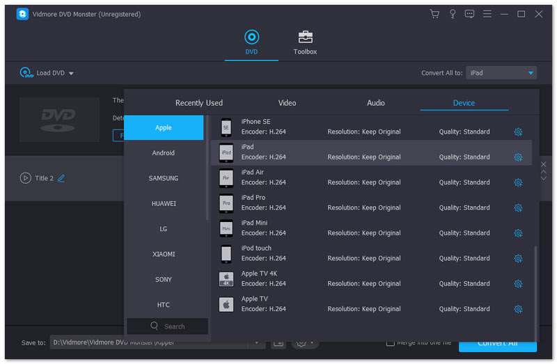 Whether you need to convert a commercial DVD, or choose the optimal file format for iPad Pro, Vidmore DVD Monster is always a nice option you can take into consideration. It not only rips any DVD to different iPad versions, but also keeps the complete DVD structure, video and audio tracks, menus, chapters, subtitles and more.
